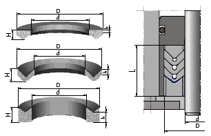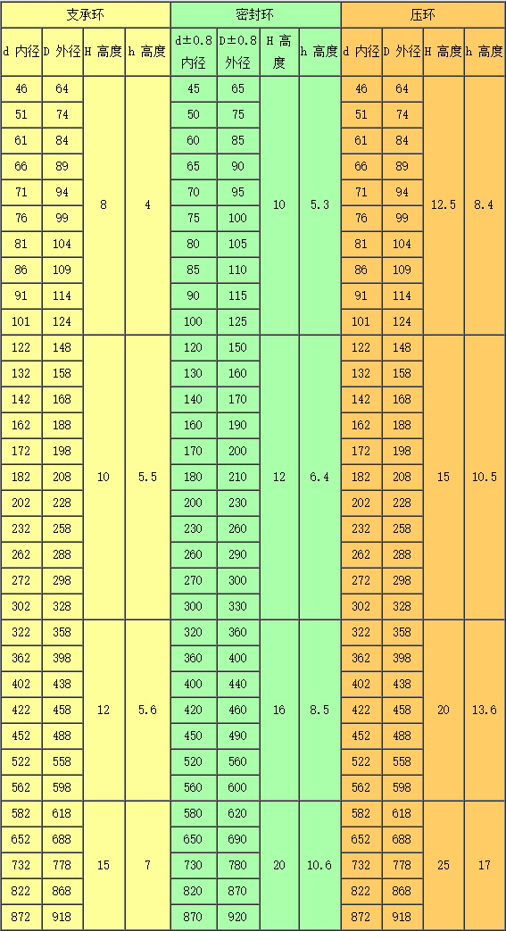 產品用途;用于往復運動超高壓液壓油缸活塞與活塞桿的密封 適用范圍:冶金、礦山、通用設備液壓油缸 材質:夾布橡膠、聚氨酯 產品硬度:95±2°A 工作溫度:- 40 ~ +120℃ 工作壓力:≤60MPa 工作介質:液壓油 標準來源:HG4-337-66(A型) G51-3