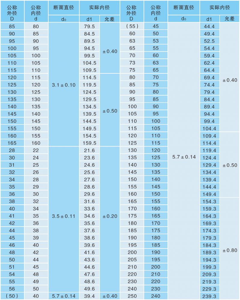 注:如需規(guī)格不在本目錄之列,請(qǐng)直接與鐵嶺嘉鑫橡膠密封有限公司(024-78848782)聯(lián)系。