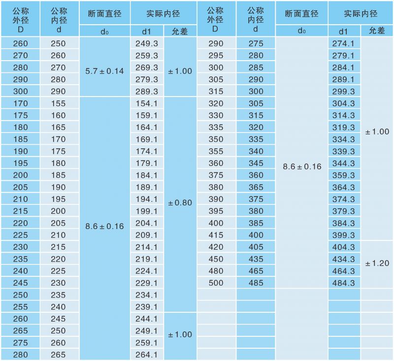 表1:O型圈標(biāo)準(zhǔn)一覽表